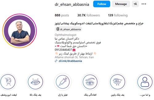 دکتر احسان عباس نیا فارغ التحصیل پزشکی عمومی از دانشگاه علوم پزشکی تهران، متخصص چشم پزشکی فارغ التحصیل دانشگاه علوم پزشکی شهید بهشتی و فوق تخصص استرابیسم و اکولوپلاستیک فارغ التحصیل دانشگاه علوم پزشکی شهید بهشتی هستند.
