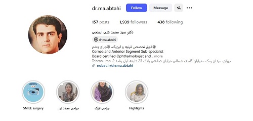 دکتر سید محمد علی ابطحی رتبه برتر بورد تخصصی و فارغ تحصیل فلوشیپ قرنیه و لیزیک از دانشگاه تهران و سالها تجربه در دانشگاه علوم پزشکی بعنوان هیئت علمی و همچنین در بخشهای خصوصی در ایران و دبی و با سابقه هزاران جراحی موفقیت آمیز یکی از جراحان موفق قرنیه و لیزیک شاغل در تهران میباشند.