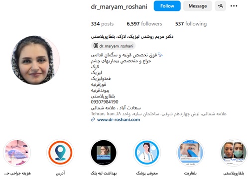 دکتر مریم روشنی فوق تخصص قرنیه و سگمان قدامی، جراح و متخصص بیماریهای چشم فارغ التحصیل دکترای پزشکی از دانشگاه تهران بوده و ایشان به عنوان یکی از بهترین چشم پزشکان در شهر تهران شناخته شده که با تلاش، پشتکار و تبحر تا به امروز توانسته است تعداد بسیاری جراحی چشم را با بهترین نتایج به سرانجام برساند.