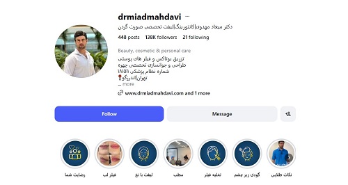 متخصص زیباییدکتر سید میعاد مهدوی پزشکی است که در زمینه مراقبتهای پوست و زیبایی فعالیت دارد و در تهران و منطقه اندرزگو مطب دارد. ایشان از سال 98 در حوزه اقدامات جوانسازی پوست حضور داشته و خدمات مختلفی مانند تزریق پروفایلو، بوتاکس و روشهای بهبود کیفیت پوست ارائه میدهد.