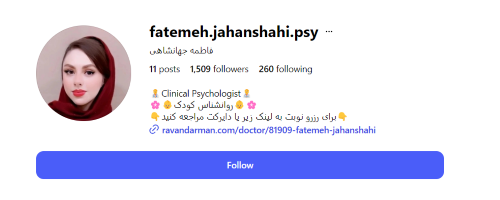 روانشناس کودک و نوجواندکتر فاطمه جهانشاهی به عنوان بهترین روانشناس و مشاور در اهواز شناخته میشود. ایشان عضو سازمان نظام روانشناسی و مشاوره ایران و عضو انجمن روانشناسی ایران است. وی تخصص اصلی خود را در حوزه مشاوره و درمان تخصصی کودک و نوجوانان قرار داده و به تشخیص و درمان انواع اختلالات میپردازد.