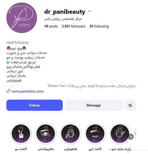 تهران، نیاوران، خیابان شهید باهنر، خیابان مصطفی مقدسی (مژده سابق)، نبش کوچه مبارزین، کلینیک زیبایی و تخصصی پانی